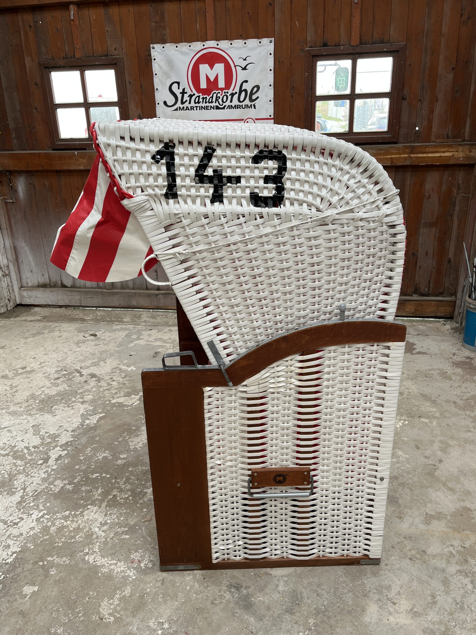 - Wir vermieten und verkaufen nur ein Modell das speziell auf unsere lokalen Verhältnisse abgestimmt ist. Die gebrauchten Körbe haben durchschnittlich 4-7 Sommer am Strand hinter sich, bevor sie zum Verkauf stehen.
