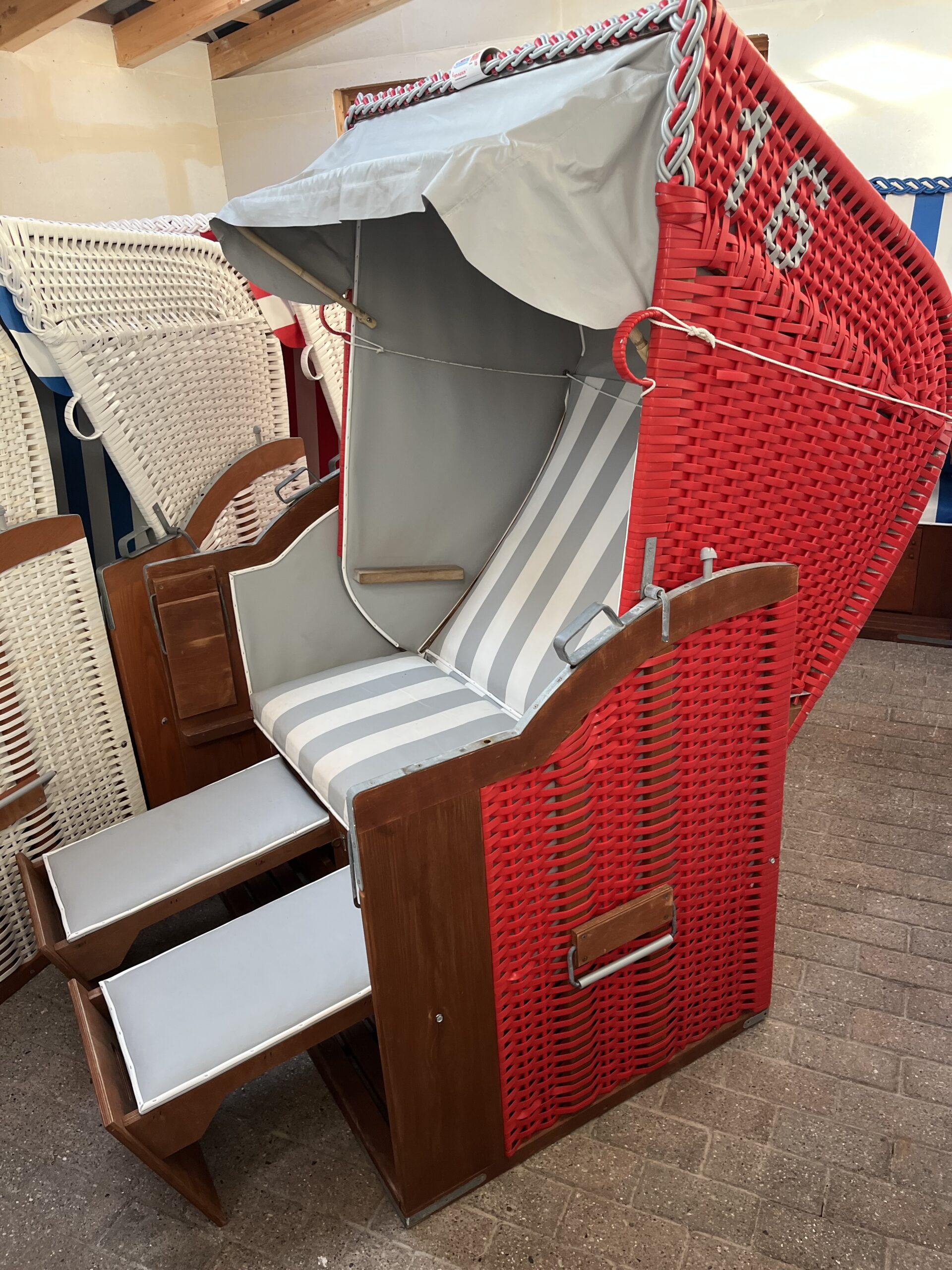 Wir vermieten und verkaufen nur ein Modell das speziell auf unsere lokalen Verhältnisse abgestimmt ist. Die gebrauchten Körbe haben durchschnittlich 4-7 Sommer am Strand hinter sich, bevor sie zum Verkauf stehen.