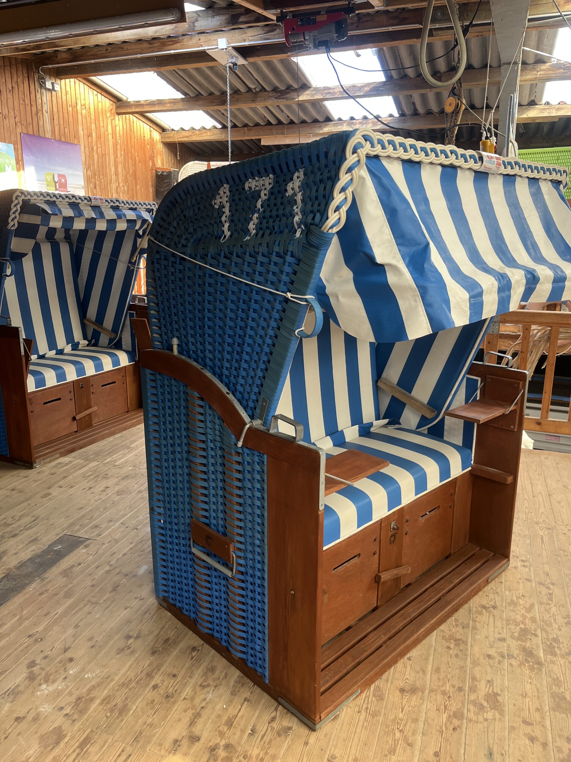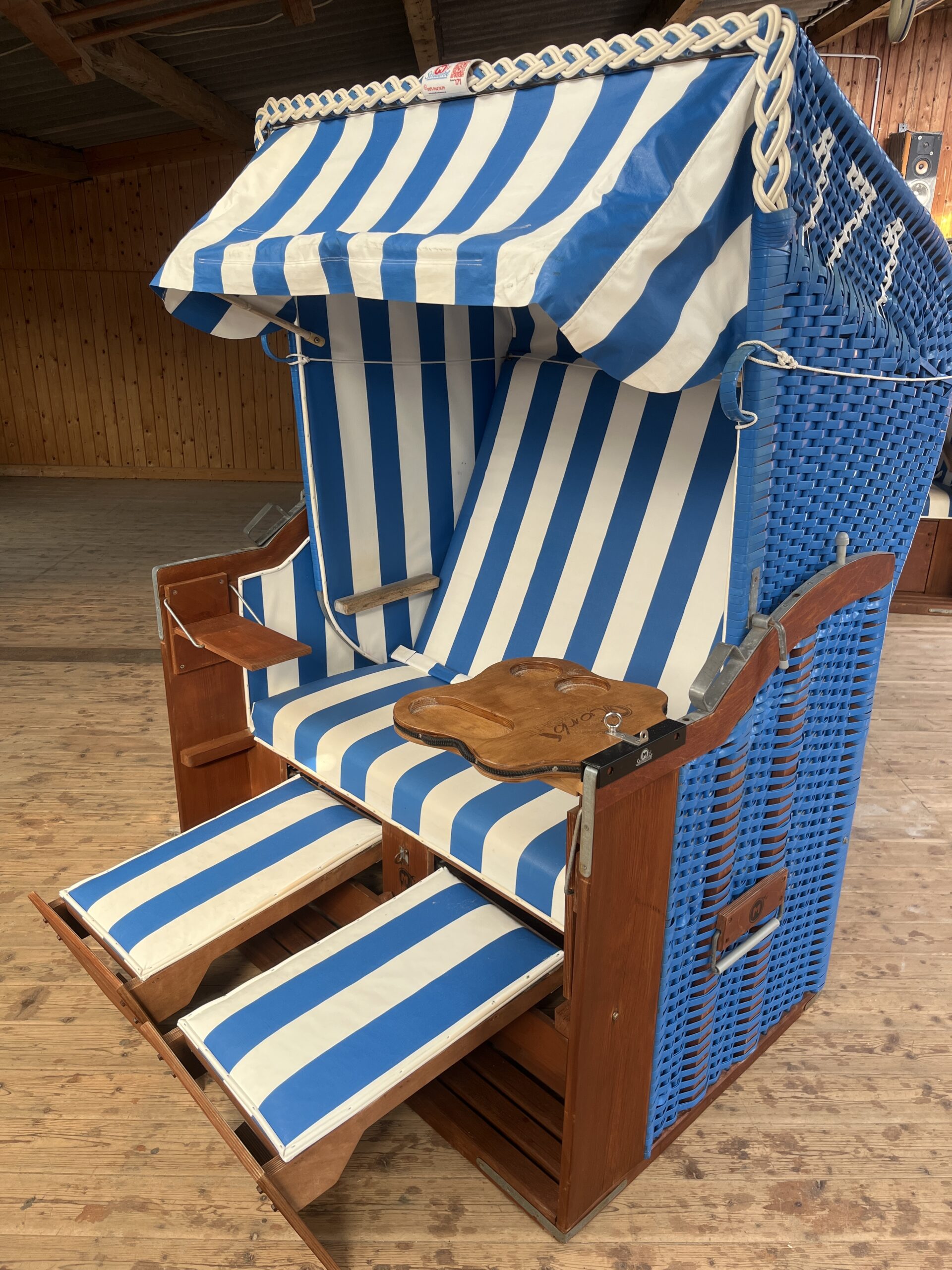 Gebrauchter Strandkorb von der Insel Amrum mit Logo und Nummer