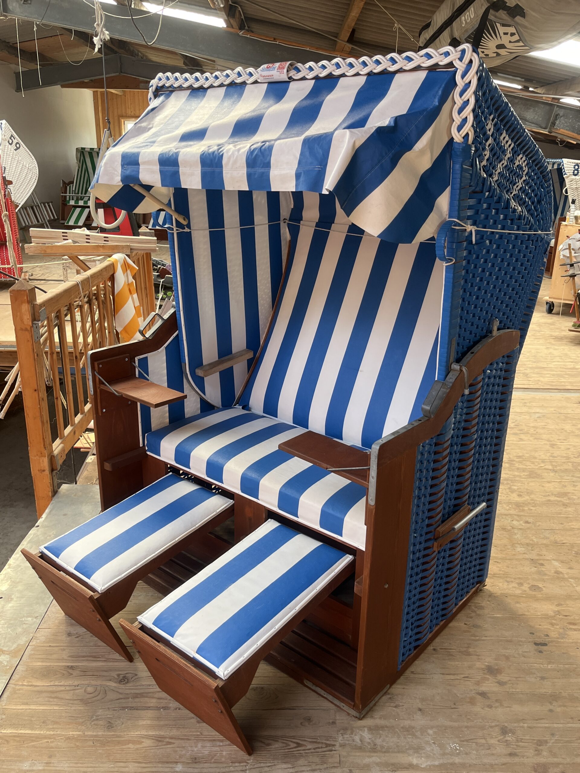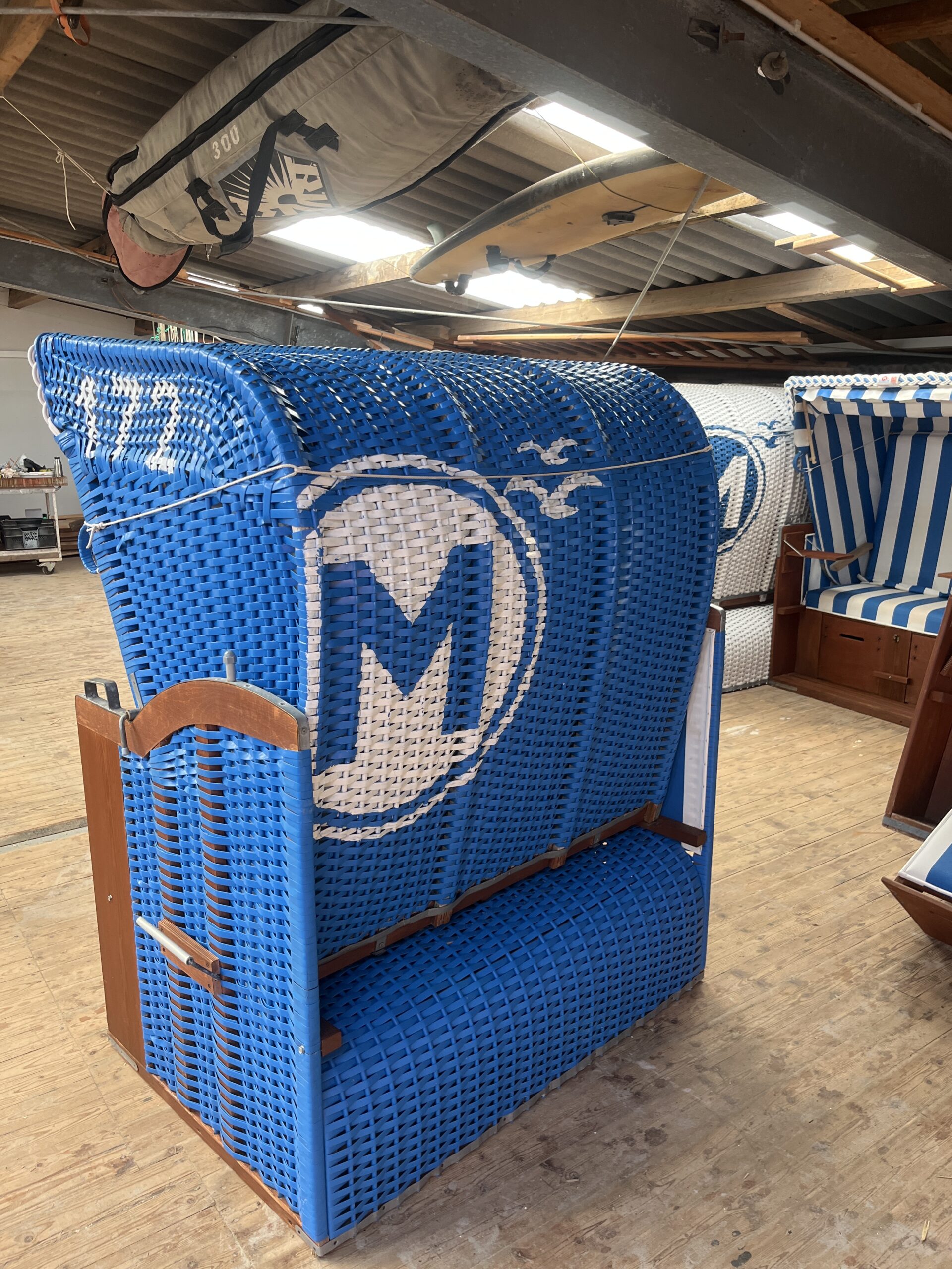 Wir vermieten und verkaufen nur ein Modell das speziell auf unsere lokalen Verhältnisse abgestimmt ist. Die gebrauchten Körbe haben durchschnittlich 4-7 Sommer am Strand hinter sich, bevor sie zum Verkauf stehen.