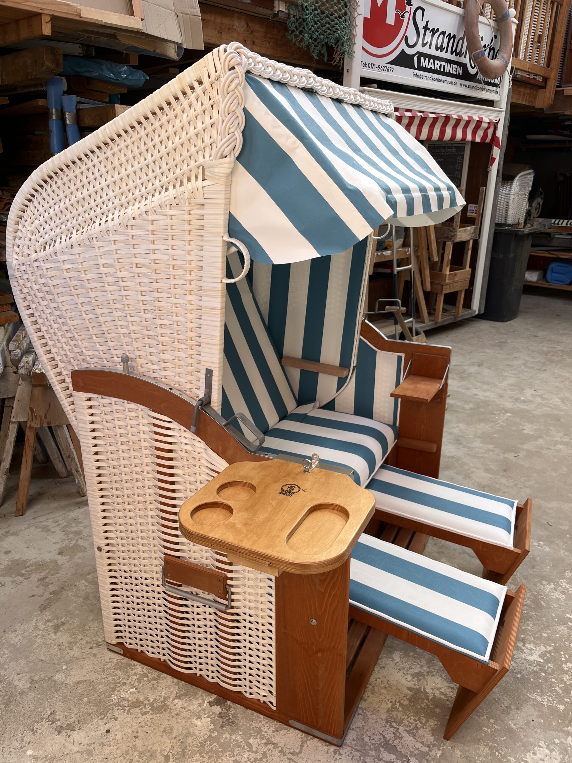 Neuer Strandkorb von der Insel Amrum ohne Logo und Nummer.